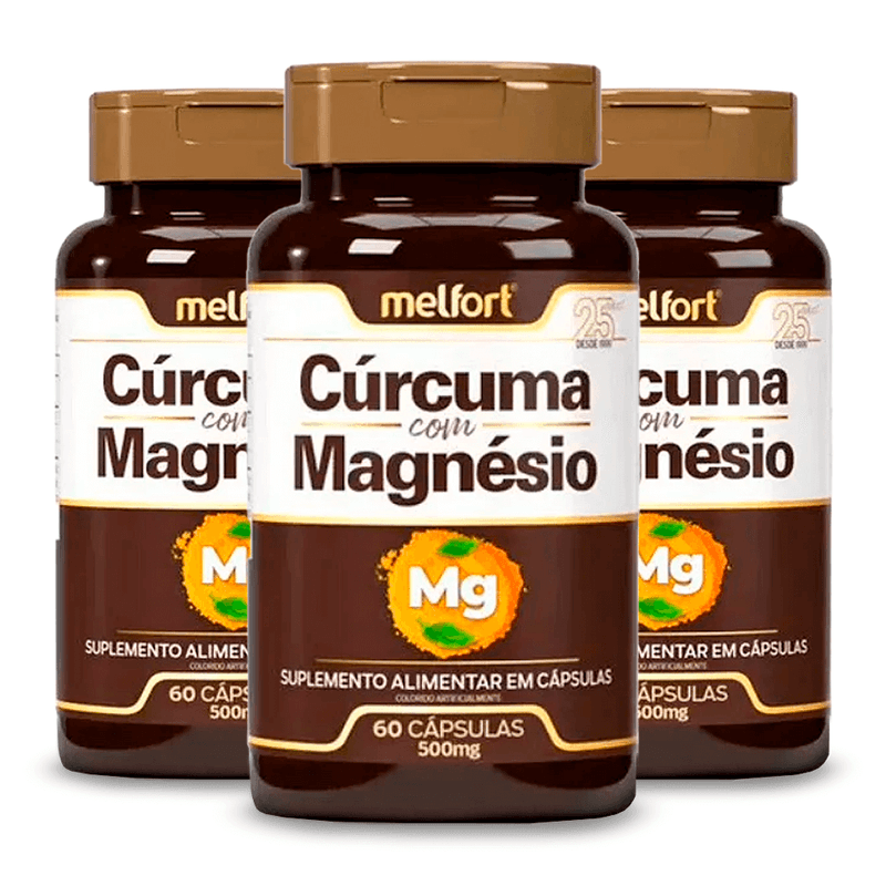 Kit 3x Cúrcuma Com Magnésio 60 Cápsulas - Melfort
