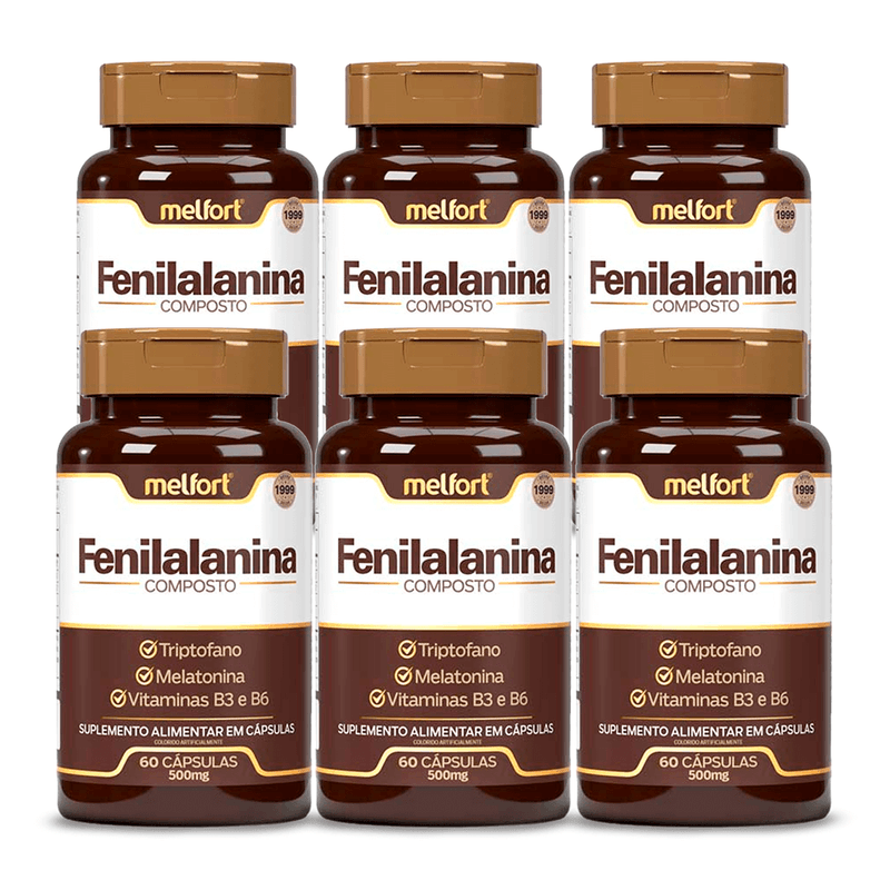 Kit 6x Fenilalanina - Triptofano - Melatonina 500mg 60 Cápsulas - Melfort