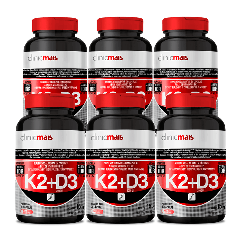 Kit de 6 cápsulas de vitamina K2 + D3, 30 cápsulas, té y más