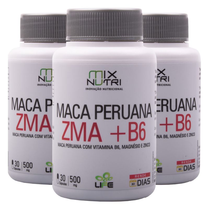 Kit 3x Maca Peruana + Zma (500mg) 30 Cápsulas - Mix Nutri