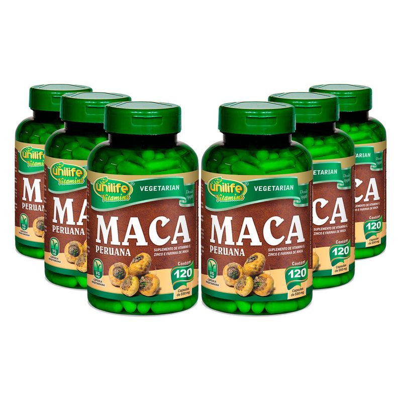 Kit 6x Maca Peruana C/ VitC e Zn (550mg) 120 Cápsulas Vegetarianas - Unilife